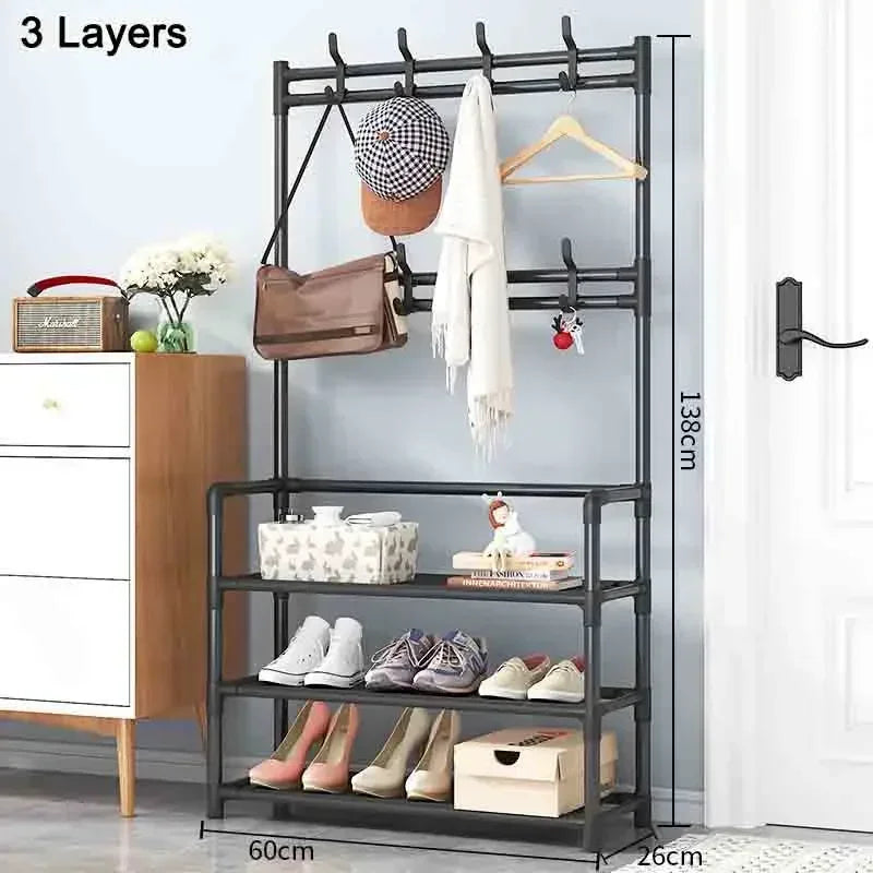 Multi-Layer Shoe and Hat Rack Household Multifunctional Shoes Racks Floor Standing Dormitory Floor Standing Sneaker Coat Cabinet
